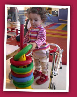 De 2-jarige Israelische Michal lijdt aan een zeer ernstige en soms fatale botziekte, Osteogenesis Imperfecta ook wel de “ broze botten ziekte” genoemd. Hierdoor breken haar botjes heel snel en heeft zij chronische pijn. Nooit durfde zij haar eerste stapjes te zetten tot het moment, dat zij in het Alyn Hospital kwam. Binnen 48 uur stond zij rechtop mede geholpen door onze uiterst ervaren fysiotherapeuten en ging er een nieuwe wereld vanaf een nieuwe hoogte voor haar open. Zowel haar moeder als de staf waren helemaal verrukt en ontroerd toen ze Michal met haar loop hulpmiddelen voor het eerst door de gangen van Alyn zagen lopen.